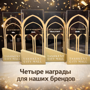 На гала-ужине, организованном Tashkent City Mall, наши бренды были удостоены почётных номинаций. По итогам мероприятия магазины Villeroy & Boch, BOSS, Nike и ресторан PAUL получили признание профессионального сообщества. В общей сложности наша команда была отмечена четырьмя наградами.
