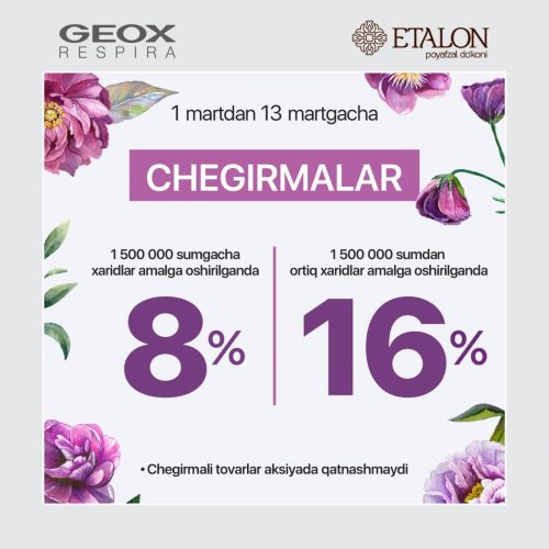Etalon и GEOX дарят СКИДКУ 15% на НОВУЮ коллекцию! *товары со скидкой в акции не участвуют Наслаждайтесь праздничным шопингом в магазинах: ETALON Юлдуз Телефон +998712356677 ETALON Novza Телефон […]