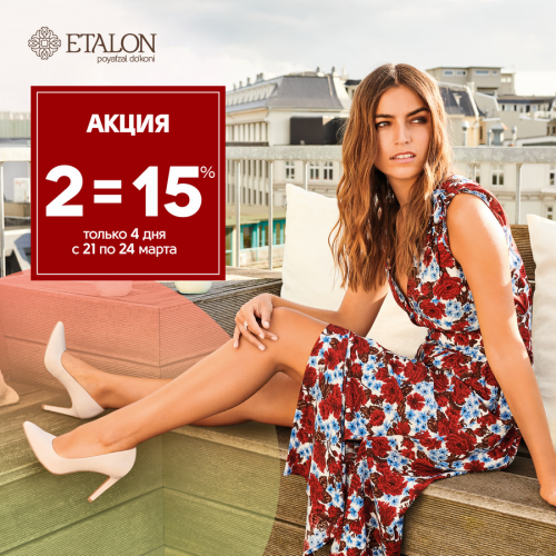 С 21 по 24 марта включительно при покупке 2 пар обуви из новой коллекции вы получаете скидку 15%! Давайте делать праздник еще приятнее. 😉 Наши магазины ETALON […]