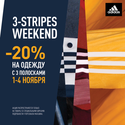 Внимание, внимание! Впервые мы объявляем 3-STRIPES WEEKEND! C 1 по 4 ноября включительно в adidas СКИДКИ -20% на одежду с 3 полосками! Телефон +998712350999 https://www.facebook.com/adidas.uzbekistan/